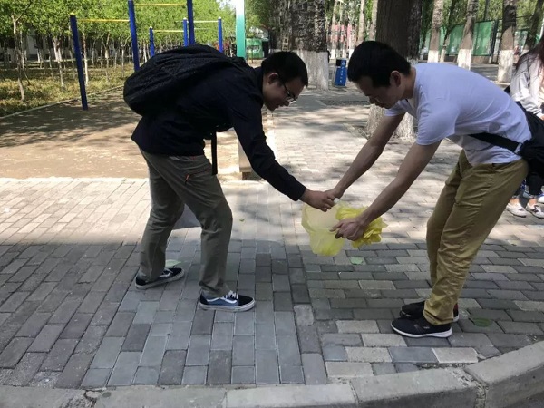 4月25日中午,北农青协经管分会在教B和礼堂附近宣传垃圾分类,给来往的同学和校内人员发放垃圾分类的传单和垃圾袋。