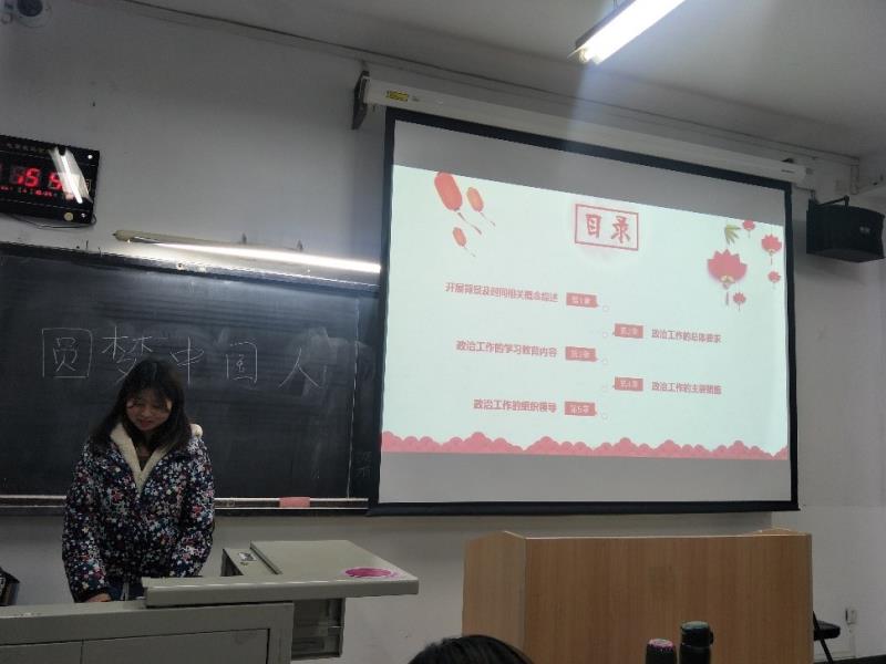 17工商2支部的宣讲同学从个人,社会,国家等不同维度阐述对于“圆梦中国人”的理解。17会计2支部的宣讲同学强调以“少年强,则国强”的情怀要求自己,并且时刻提醒自己作为当代老员工的我们更应该为实现中国梦做出自己的努力。16农经1团支部两位同学的精彩演讲,表达出作为有理想有抱负的老员工、共青团员,我们身上承担着服务社会、建设祖国、实现伟大强国梦的重任,我们要牢记使命,不忘初心,用自己的实际行动践行我们的理想的深切体会。