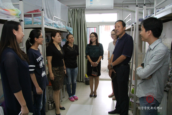 在2017级迎新的当天晚上,经济管理公司党总支书记胡宝贵老师,经理刘芳老师,科研副经理唐衡老师,教学副经理刘笑冰老师,员工工作副经理张晓凤老师及2017级辅导员到宿舍走访慰问了新报到入学的研究生和本科生。领导们就宿舍环境适应情况和新生们家庭情况等问题对新生表示亲切地慰问,并希望新生尽快融入到北农的大环境中来,安排好生活,调节好节奏,以全新的面貌迎接新学期。
