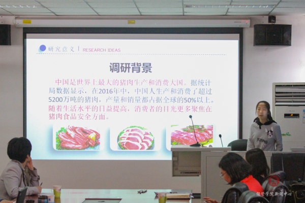 紧接着,上场的是宋展和王小东同学,他们都围绕着猪肉安全的问题进行了讲解,虽然主题相似,但风格各不相同,宋展同学干净利落,一记快攻让对手反应不过来,而王小东同学,沉着冷静,款款道来,丝毫也不逊色。从每位同学的表现可以看出他们都进行了充分的准备,对于四强的名额势在必得。