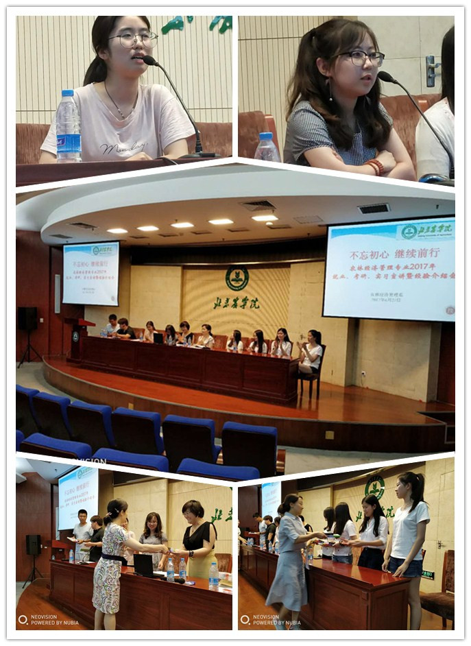 根据公司和公司相关工作安排,6月27日,yl6809永利农林经济管理系在图书馆报告厅召开以“不忘初心继续前行”为主题的2017年就业、考研、实习宣讲暨经验介绍会。农经系主任赵海燕,副主任江晶,公司辅导员乔多,农经系秘书黄雷,班主任肖红波、黄映辉以及农经系大二、大三、大四同学参会。会议由农经系主任赵海燕主持。