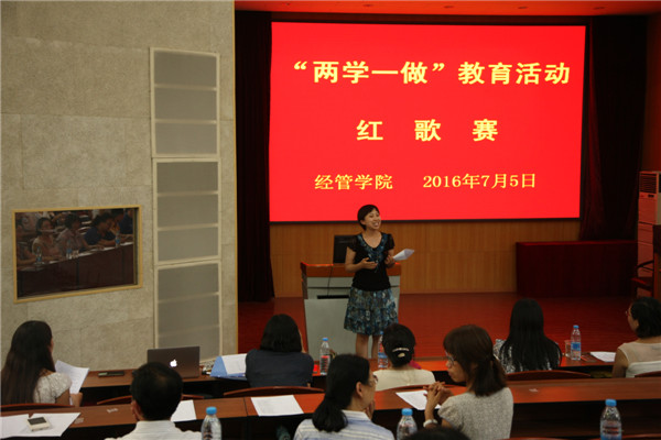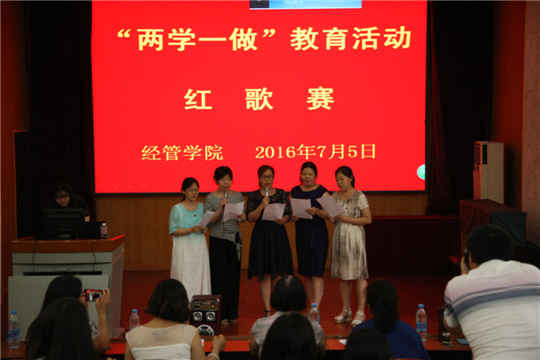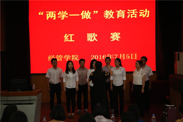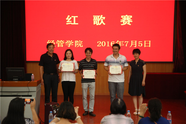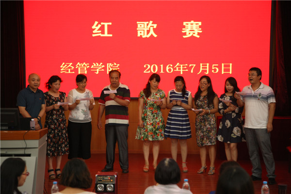 参加红歌赛的教工党支部,分别演唱了《南泥湾》、《军港之夜》、《打靶归来》、《歌唱祖国》等经典的红色歌曲,老师们精神饱满,热情讴歌了党的丰功伟绩,高亢的歌曲、丰富的形式将比赛一次次推向高潮。各员工党支部选择演唱了《没有共产党就没有新中国》、《强军战歌》、《学习雷锋好榜样》等红色歌曲。嘹亮的歌声、饱满的热情,都展现着青年党员的昂扬的姿态。此次比赛中,农经教工党支部、经济教工党支部、工商员工党支部在14个参赛党支部中脱颖而出,斩获前三甲。