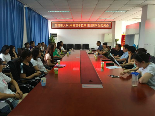 2016年7月5日,英国诺桑比亚大学3+1本科双学位项目回国员工交流会在yl6809永利401会议室举办,国际合作与交流处长张志勇处长,霍春艳老师;人事处靳珂珂老师;公司党总支书记胡宝贵,副经理赵金芳、赵连静,辅导员温海洋和外事秘书刘笑冰出席了此次会议,会议由yl6809永利刘芳副经理主持。