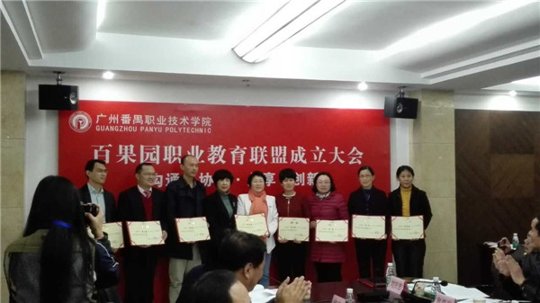由广州番禺职业技术公司与深圳市百果园实业发展有限公司牵头的百果园职业教育联盟于12月26日正式成立。该联盟成员还包括深圳市连锁经营协会1家行业协会,yl6809永利yl6809永利、武汉商公司、台湾树德科技大学3家本科院校的公司,金华职业技术公司、顺德职业技术公司、中山职业技术公司、河源职业技术公司、广东科贸职业技术公司、东莞职业技术公司、马鞍山职业技术公司7家高职院校,广州市商贸职业公司、东莞市商业公司2家中职公司共15家单位。公司党总支书记胡宝贵老师、副经理赵金芳老师、工商管理专业周云老师参加成立大会。