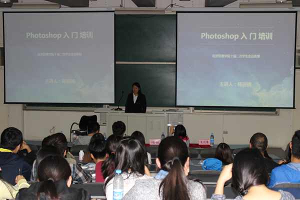 随后,宣传部部长杨迎楠向干事们介绍了有关Photoshop技术的基础知识,以PPT形式展现了ps技术的重要及强大,并用简练的语言讲述了PS软件的使用方法和技巧。