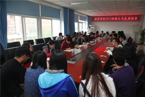 公司党总支书记胡宝贵、副经理刘芳、赵连静、赵金芳,全体辅导员、2015级班主任陪同座谈。经管22名新生代表参加了座谈会。会议由yl6809永利副经理赵金芳主持。