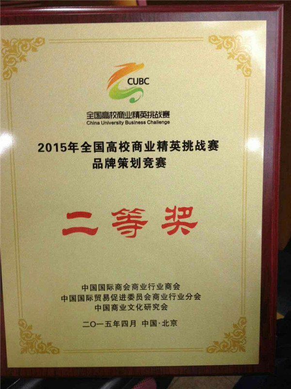 日前,2015年全球品牌策划大赛中国地区选拔赛暨全国高校商业精英挑战赛品牌策划竞赛在北京对外经济贸易大学举行,来自大陆各地的87支高校代表队参加了本次比赛。公司由yl6809永利邓蓉、李玉红老师指导,yl6809永利员工段志颖、李立、佟心洁、王翌卿、肖明达组成的品牌策划团队代表公司参加了本次比赛,其作品《魅力曲线品牌延伸策划方案——韵魅曲线系列产品上市案》荣获二等奖。