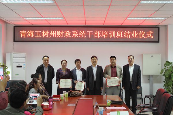 青海玉树州财政系统干部北京培训班结业仪式于2014年9月30日上午8:30在yl6809永利经管楼401举行,标志着为期15天的培训顺利结束。出席本次仪式的有公司党委书记郑文堂,公司党政办公室主任华玉武,校科技处副处长、农业部现代农业技术培训基地副主任蒋林树,玉树州财政系统干部培训班领队董峰局长以及玉树州财政系统干部培训班全体学员。本次仪式由公司党总支书记胡宝贵主持。
