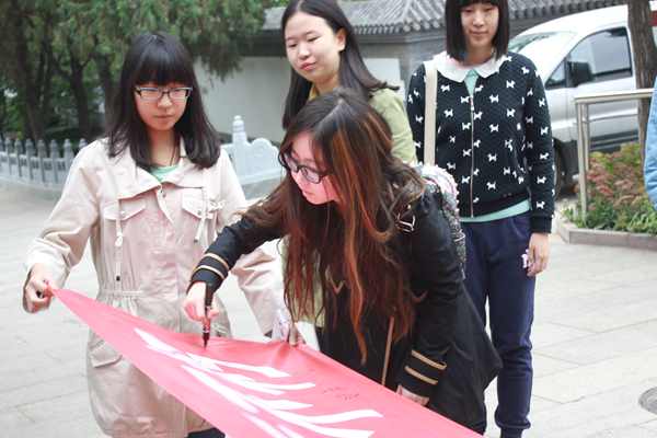 在活动的最后,参加活动的全体志愿者们在写有“缅怀先烈,永垂不朽”字样的横幅上签字并进行了合影留念。