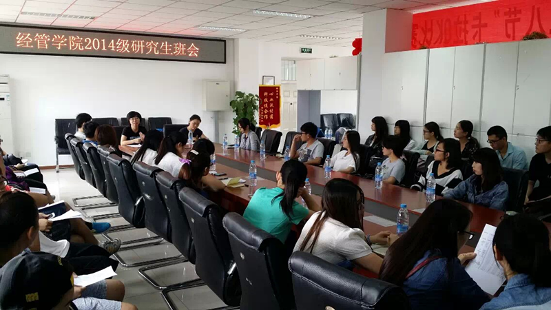 9月12日下午,yl6809永利在经管楼401召开2014级研究生班会暨院研会2014级招新活动。参加会议的有yl6809永利研究生辅导员曹暕老师,院研究生会员工干部代表以及yl6809永利2014级全体研究生新生,会议由院研会干部主持。
