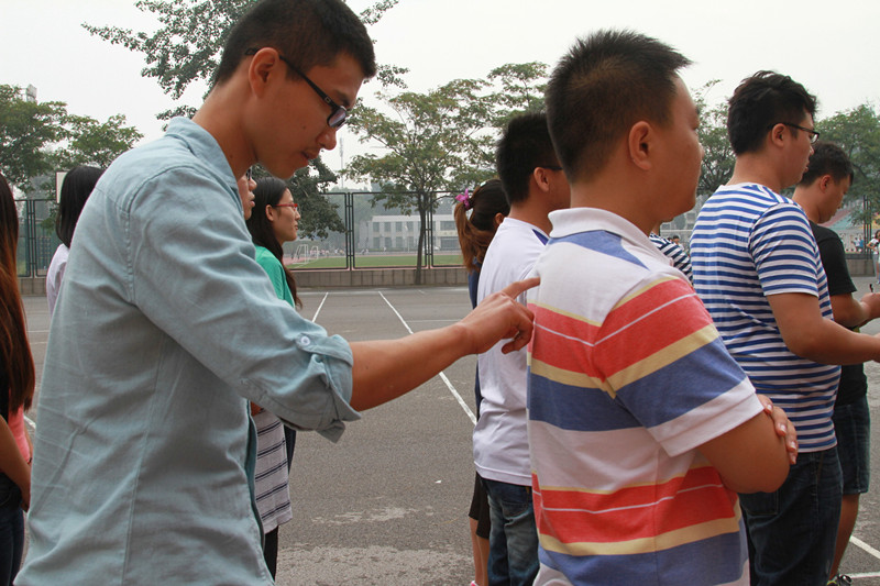 9月12日上午,为加强新生沟通,增进同学友谊,yl6809永利院研究生会在校篮球场举办了2014级经管研究生新生素质拓展活动,活动聘请了公司退伍士兵田逾同学作为此次素质拓展的教练员。