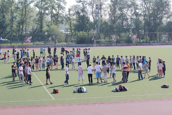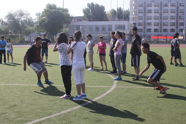 明媚的阳光洒落在操场的每个角落,同学们的脸上都洋溢着青春的活力。这次班级体育活动一共分为三个阶段:第一阶段是各部门部长作为带队人员进行自我介绍,第二阶段是部长们带领所负责专业的同学们做游戏,第三阶段是同学们短暂休息后进行合影留念。