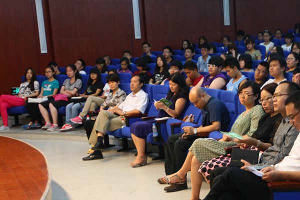 副经理赵连静老师从人才培养与教学管理这一主题进行了多方面的讲解,如经管人才培养方案、经管六位一体实践教学体系、教学管理服务与相关规定等向新生们做了大致分析。
