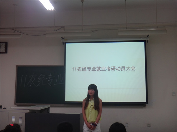 2014年6月,又迎来每年一度的毕业季。为响应公司和公司积极促进毕业生就业的号召,农经系于5月29日在教B305召开了“11农经专业就业考研动员大会”主题班会。班会由班主任赵海燕老师主持,农经系系主任陈娆老师、10级农经专业毕业生高可心等6位学长代表、11农经专业全体同学参加了此次活动。