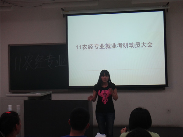 首先,陈娆老师对11级农经专业四年级的发展方向做出了总体的规划,并鼓励同学们为毕业后发展早作准备、积累知识经验。随后,10级农经专业的高伸、赵春宇、徐月华、宗佩佩、高可心、朱满阳等同学上台,结合各自的就业或考研经历,分别讲述了考公务员、进公司、考村官以及硕士生笔试、面试、调剂等多方面的感受和经验,并对11级同学提出的疑问做了详尽的解答,为11级同学的发展提出了建议。