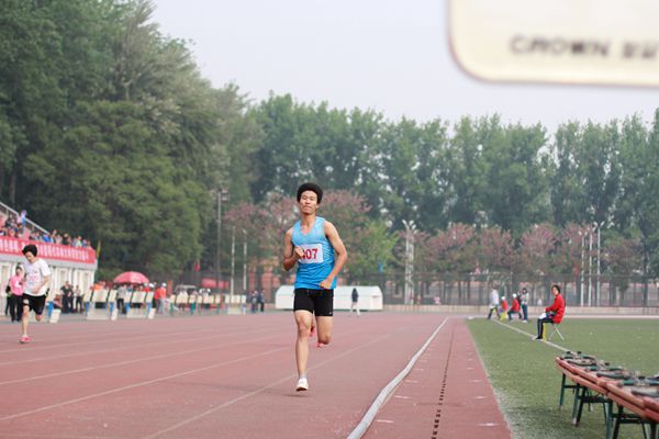 一声发令枪响,经管健儿407张学震第一个冲出,迈着矫健的步伐,迎着春日的微风,他奋力向前方奔跑。赛场上,他用汗水展示了运动的激情:奔跑中,他用速度书写了辉煌。最终,他以24.32秒取得了小组第一名也是预赛第一的好成绩。