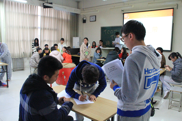 为了进一步增强同学们的团队协作能力以及加深同学们之间的情谊,由yl6809永利团总支员工会办公室主办的首届“经管杯”TEAM TIME小组对抗赛经过一系列激烈地角逐于11月21日下午3点30分在教学楼B座206举行决赛。入围决赛的团队有农经专业、工商专业及市营专业共18名同学。公司党总支副书记赵金芳老师,行政党支部书记李国政老师,团总支书记骆金娜老师和2012级辅导员王薇老师作为嘉宾来到了比赛的现场。员工会副主席程杰鑫及员工会各部部长有组织的观看比赛,并且为各自喜欢的团队加油。