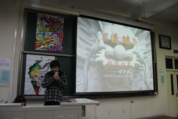 比赛在第二轮嘉宾评审投票中进入白热化阶段。最终,生物工程公司的褚宇杰同学凭借他的作品《逆鳞》斩获本次比赛第一名。