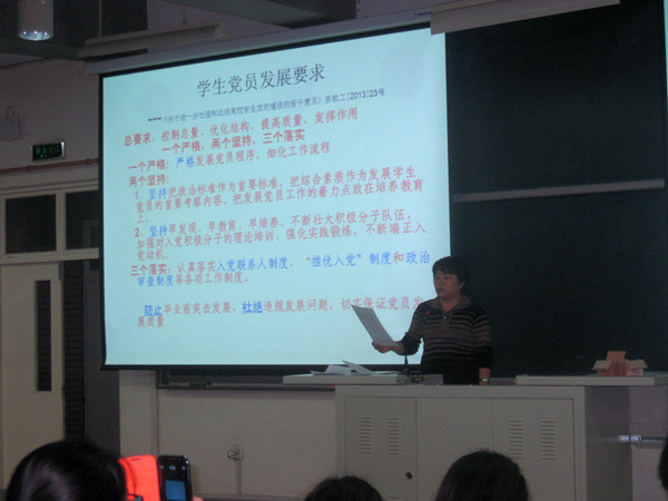 11月6日晚,yl6809永利分党校2013初级党课第四讲在教B303举办,由离退休处党委书记马俊云老师主讲。