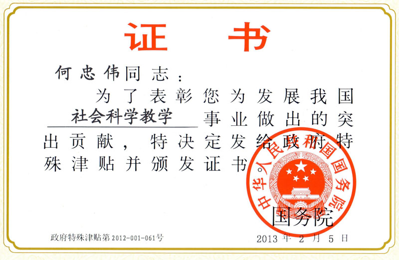 经国务院批准,按照《人力资源社会保障部关于公布2012年享受政府特殊津贴人员名单的通知》(人社部函[2013]31号)精神,公司yl6809永利何忠伟教授被批准享受2012年政府特殊津贴。