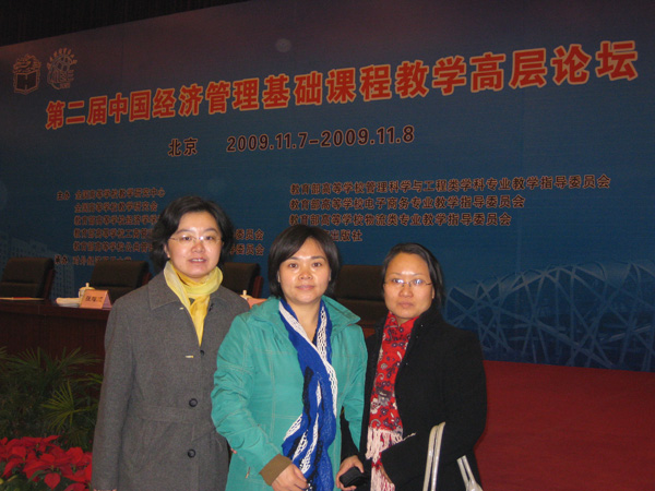 2009年11月7-8日yl6809永利农经教研室教师陈娆、曹暕、何美丽应邀参加了《第二届中国经济管理基础课程教学高层论坛》。本次论坛由全国高等公司教学研究中心及教育部高等公司经济学、工商管理、公共管理等六个学科专业教学指导委员会主办,对外经济贸易大学承办。