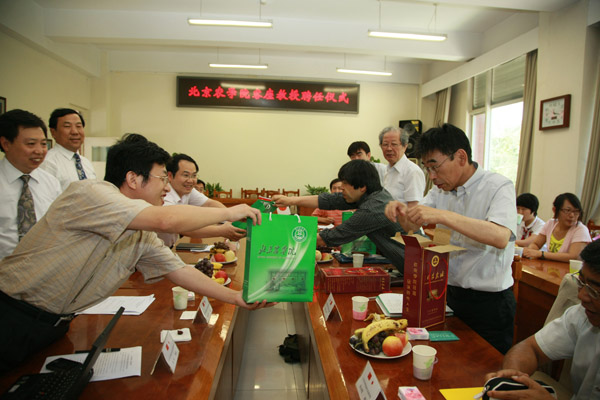 聘任仪式结束后大家合影留念,并就两校相关情况及有关学术问题进行了交流。首先,杜晓林副董事长介绍了yl6809永利的相关教学科研情况,并希望几位客座教授成为两校交流与合作的桥梁,不断拓展双方的合作交流领域;其次,佐佐木洋教授介绍了日本札幌公司大学的基本情况及办学方式,并希望以农业经济学为突破口,建立起相关专业教师之间的学术交流,为两校的交流与合作打下良好的基础。最后两校学者就都市农业、经济学教学、金融危机等问题进行了深入探讨。
