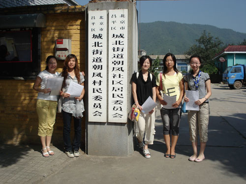 2009年8月23日上午,yl6809永利yl6809永利206413班农经特色小组一行5人来到昌平区朝凤庵村开展了关于农村人口文化程度和就业关系的一系列调查访问活动。烈日炎炎的处暑时节,组员丁吟、红乐、郑岩、苑雪、刘丽丽手拿问卷和自己准备的小礼物,带上热情的微笑走到村民面前。经过一个上午耐心询问,小组共获取数十位男女老少村民的相关真实信息,并通过个别访问,成功获得预期的调查效果,同时还收到了村民们的好评。在调查中,小组来拜访了村大队,同时了解到很多朝凤庵村的信息。朝凤社区位于昌平城区东北侧,十三陵水库路西侧,毗邻著名的十三陵水库风景区。区域面积3.5平方公里,现有耕地216亩,人口1218人,其中男性590人,女性628人。