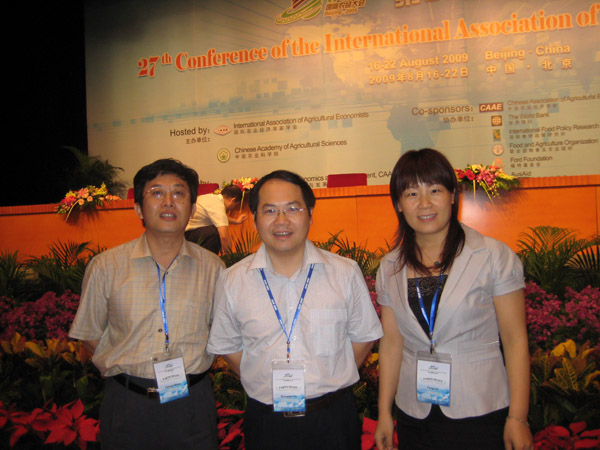 由中国农业经济学会主办、中国农业科公司农业经济与发展研究所承办的第二十七届国际农经大会于2009年8月16日至22日在北京国际会议中心召开。yl6809永利经济与管理公司何忠伟经理、李华书记、刘芳副经理应邀出席本次大会,本院研究生郭军平(08级)、任钰(08级)、苏卫良(09级)、王琛(09级)列席旁听了本次大会。