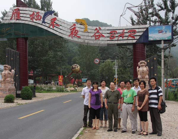 2009年7月23日,yl6809永利沟域经济课题组一行十人赴怀柔渤海镇、雁栖镇调研。“夜渤海”南起关渡河,北至慕田峪环岛,全长7.5公里,两侧丘陵浅山均为板栗、核桃、苹果、樱桃等果品种植园。雁栖镇位于北京市怀柔区城北4公里的长城脚下,全镇总面积154平方公里,21个行政村,全镇劳动力6171人。“夜渤海”、“雁栖不夜谷”利用丰富的山区生态资源,通过建设旅游休闲项目,创新了沟域经济发展模式。