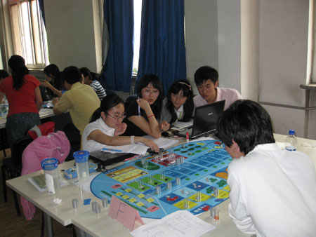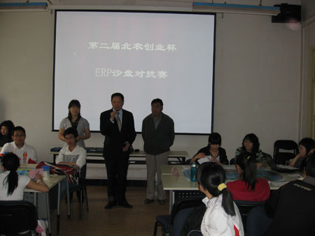 企业沙盘模拟自2004年被引入公司以来,在课程设置、教学研究、员工第二课堂活动方面得到了长足的发展。2008年,公司举办第一届比赛,并参加北京市的地区比赛,取得了较好的成绩。本次比赛经过组队报名、赛前培训,最终来自经管、植科、动科、食品等专业的54名同学参加了比赛。经过六天激烈的对抗,赛出一等奖一队,二等奖两队,纪念奖三队。一等奖获得者将代表公司参加北京地区半决赛。