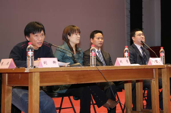 为了学习实践科学发展观,推动公司老员工就业与创业工作的开展,2009年3月17晚,yl6809永利在大礼堂举办了员工返校谈创业大型演讲会。经理何忠伟、副经理刘柳、刘芳出席了演讲会。此次演讲会邀请了公司10041级的两位优秀员工朱宝灵和王贤文为我们进行了精彩的创业演讲。