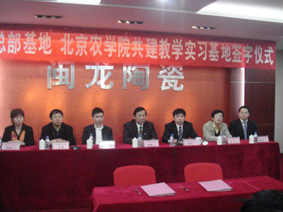 为了加强经贸系毕业生的实习就业工作,更好的实现校企合作与共建,yl6809永利经济贸易系与闽龙陶瓷总部基地校外实习基地挂牌仪式于2008年3月21日在闽龙陶瓷总部基地隆重举行。副经理杜晓林教授、教务处副处长安健、经贸系党总支书记李华、系主任何忠伟、副主任刘芳、刘柳和会计教研室主任李瑞芬参加了揭牌仪式。参加揭牌仪式的还有北京晚报、北京青年报、北京晨报、京华时报、信报、北京日报、新京报、法制晚报、新华社、中华工商时报、中国消费者报、北京现代商报、朝阳报、人民广播电台、朝阳有线等21家媒体和商户。