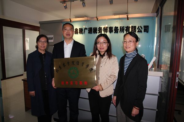 2018年10月12日,校督导组李江、孙祎振老师,yl6809永利刘笑冰副经理、会计系主任张宁老师、支部书记白华老师以及黄玉梅老师和石林老师一行对会计系校外实习基地-北京鑫税广通税务师事务所实习员工的实习情况进行了检查,并举办了实习基地牌匾更新仪式。