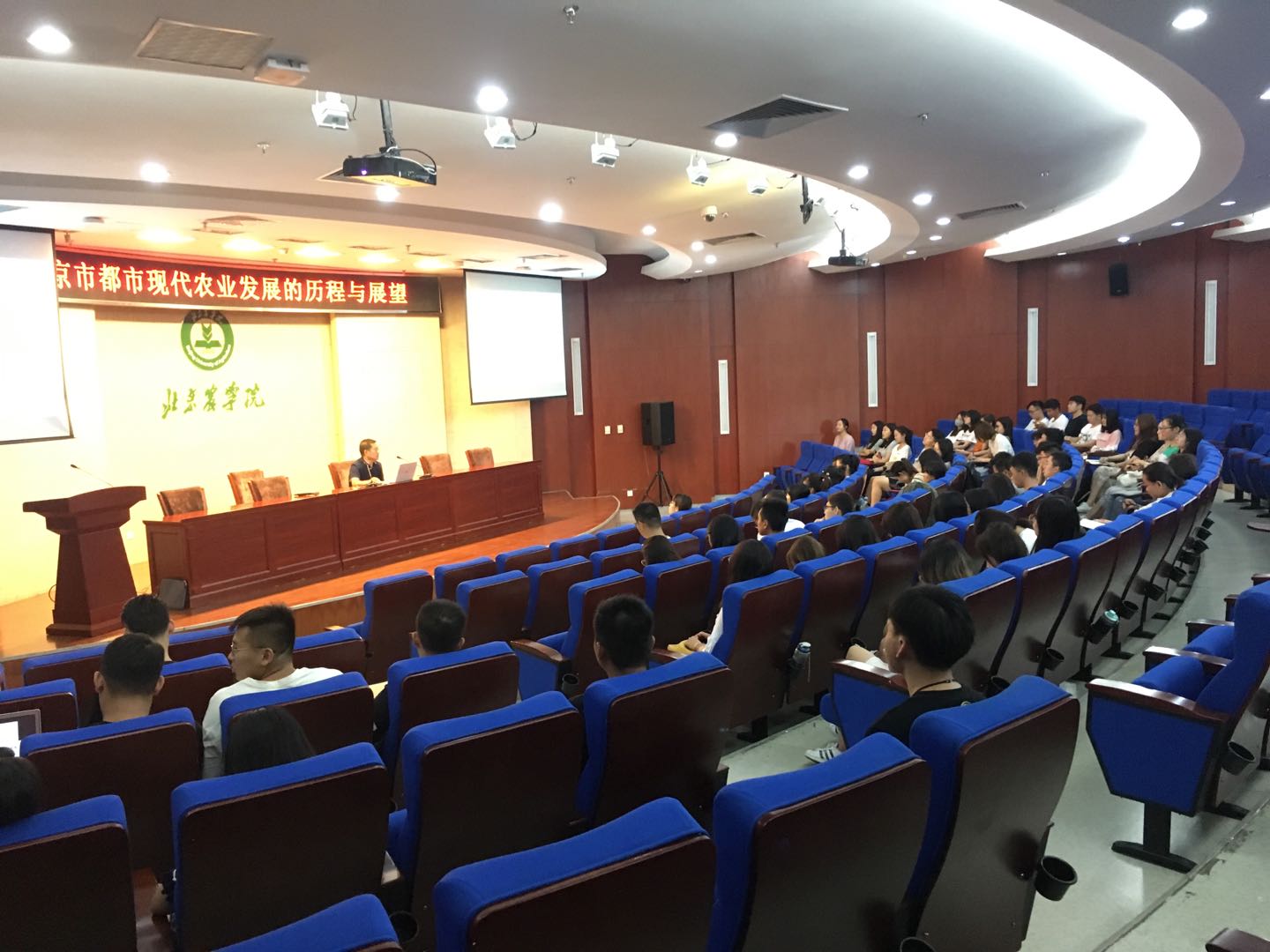 程晓仙处长做了题为《北京市都市农业发展的历程与展望》的报告,主要分为三部分:北京市都市农业发展的基本概况,科技支撑以及发展思路。以数据及实例给同学们生动地讲解了北京都市型现代农业“三生”并存、“三率”并举、“三产”共融、“三化”同步四个特征;讲解了北京农业突出安全、突出绿色生态、突出提质高效、智慧农业四个重要方向以及首都现代农业的科技支撑和发展思路。