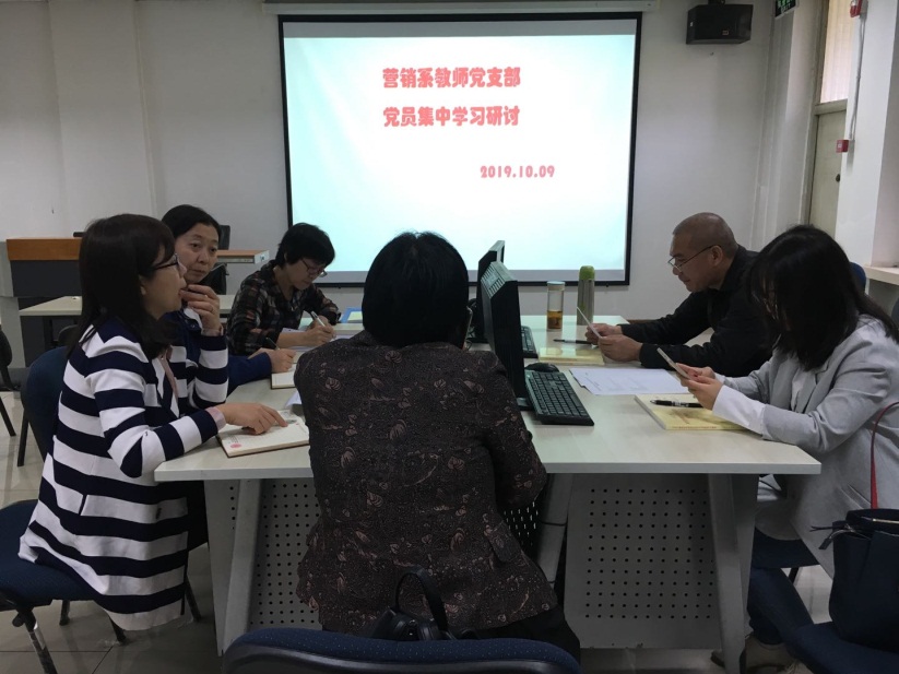 10月9日,营销系教师党支部在经管楼113开展了党员集中学习研讨活动。一是集中学习了习近平总书记关于关于“中国共产党人的初心和使命,就是为中国人民谋幸福,为中华民族谋复兴”的相关论述。二是针对理论学习内容和各自的工作,组织每位党员重点围绕理想信念、担当作为讲述自己的学习体会。大家分别就员工思想政治教育、就业、农村扶贫、师道尊严等有关教书育人和社会服务等主题,深入畅谈了各自的体会。