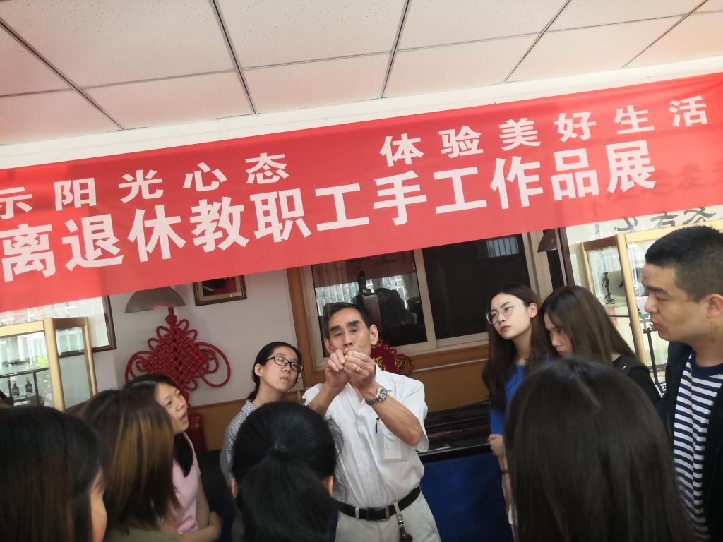 首先,沈文华老师讲解了工匠精神的含义、作用以及关涛老师青年时期优秀事迹。接着,由关涛老师对展柜中的作品进行了逐一、详细的解释,指出创造作品的每一步都需要动脑思考,不断创新,更要精益求精。