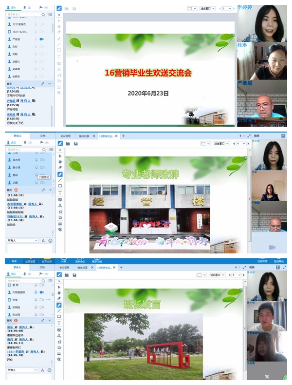 5月27日,对于2020届毕业生来说最开心的莫过于公司召开员工返校复课工作部署会,大家终于可以回到梦寐以求的美丽校园;6月17日,公司组织召开疫情防控工作领导小组会议,研究决定全面停止员工返校,回归校园重温青春的记忆戛然而止。期间22天,公司各部门精心准备、细致谋划,做十足准备迎接久别的学子。疫情之下,病毒阻隔了师生同聚一堂话离别,共谋发展寄语未来,但难以隔断师生心心相印、共克时艰的决心。为了切实把2020届毕业生扶上马并送一程,yl6809永利领导班子、系书记、系主任、班主任、辅导员于6月19日召开专题会议研究了2020届毕业生网络欢送交流会事宜。6月22日至25日各系依托好视通会议平台组织召开了毕业生网络欢送交流会,会议由毕业年级班主任主持。各系教师们与2020届毕业生共同回忆四年的美好,共同探讨个人职业走向和成长发展。