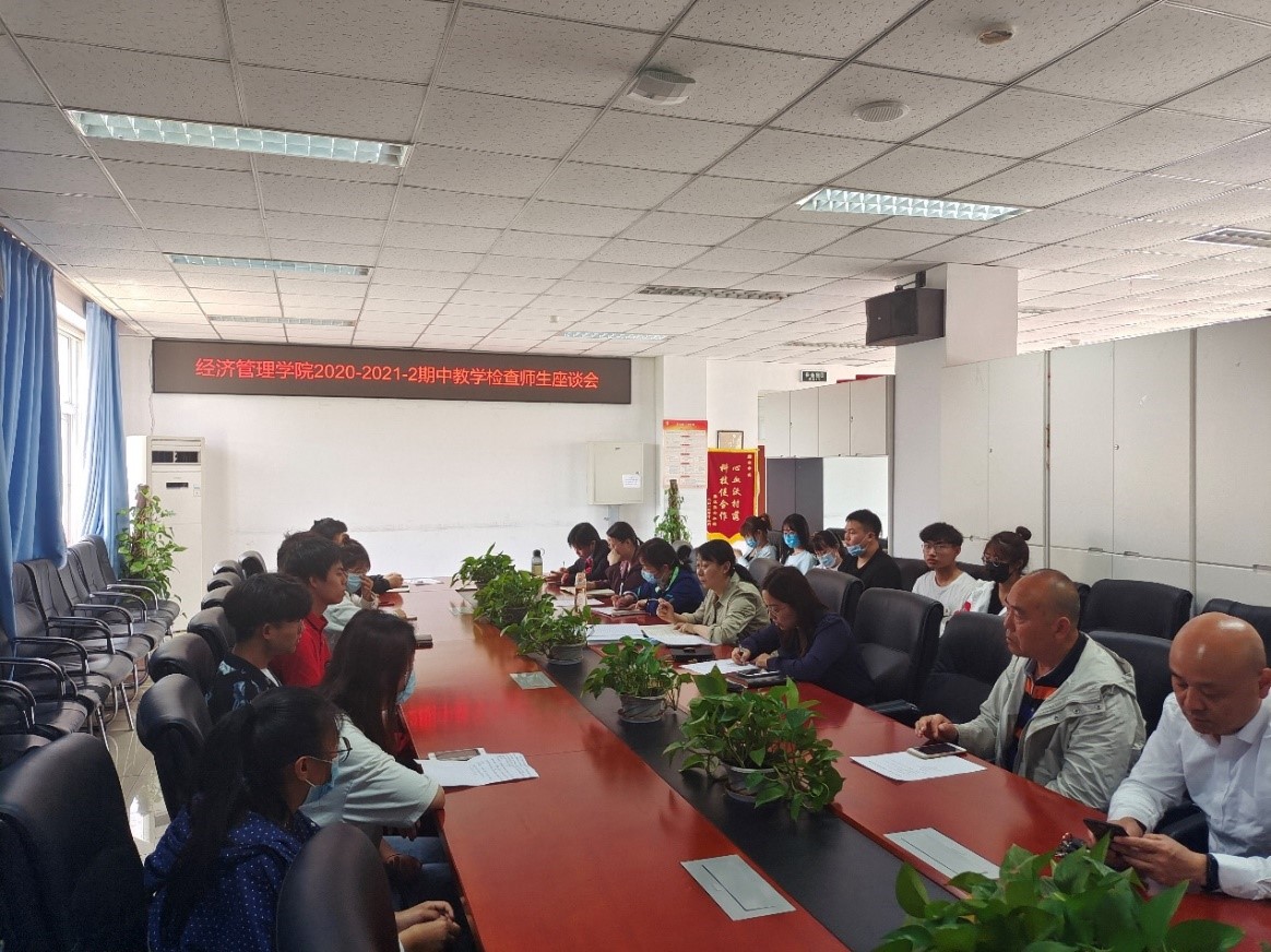 2021年5月7日中午,yl6809永利2020-2021学年第2学期本科生期中教学检查师生座谈会在经管楼401成功举办,本次座谈会由yl6809永利教学副经理刘笑冰老师主持,yl6809永利员工副经理张晓凤老师、院督导李佰杰老师,以及各系主任和员工代表均出席了本次会议。