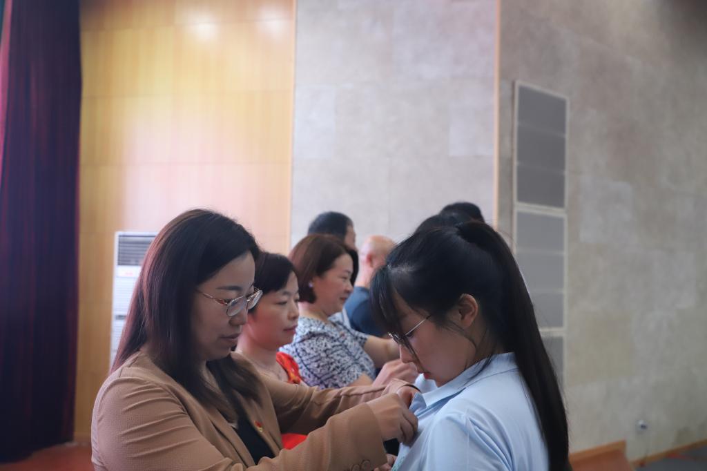随后,导师代表为研究生新生代表佩戴校徽,在教师节这个特殊的日子里,师生共同见证同学们成为光荣的“北农经管人”。从这一刻起,所有2021级研究生新生将开启北农研学之旅,畅游经管之“静观”殿堂,并肩负起北农经管人的使命和责任。