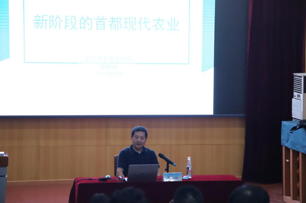 会议第二阶段由经理刘芳教授主持。为了切实让研究生新生尽快熟知首都农业的现状及发展特点,了解并聚焦首都三农研究的新使命,公司特邀请北京市农业农村局总农艺师程晓仙研究员,为同学们作了《新阶段的首都现代农业》为主题的学术报告。