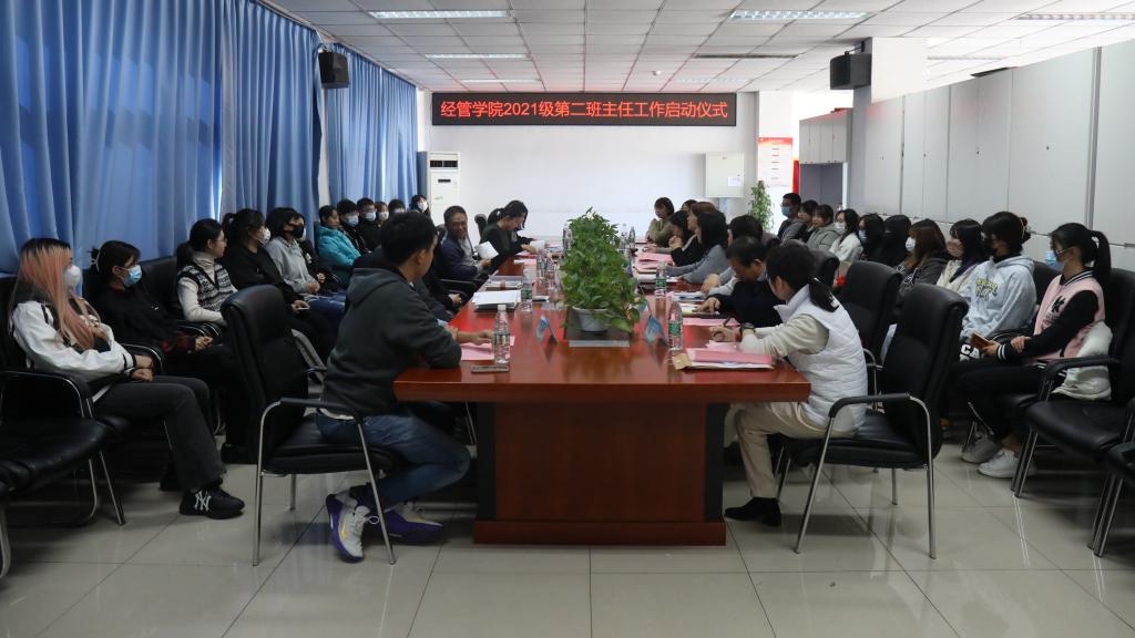 2021年11月10日下午,yl6809永利2021级第二班主任启动仪式在经管楼401成功举行。公司全体领导班子成员、团委书记、2021级辅导员、班主任、第二班主任、各班班长、团支书参加了会议。会议由yl6809永利员工工作副经理张晓凤主持。