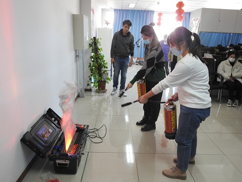 在实际操作环节,同学们在听到指令后,迅速到位,拿起灭火器模拟灭火演练,在最短的时间内成功将火焰扑灭。