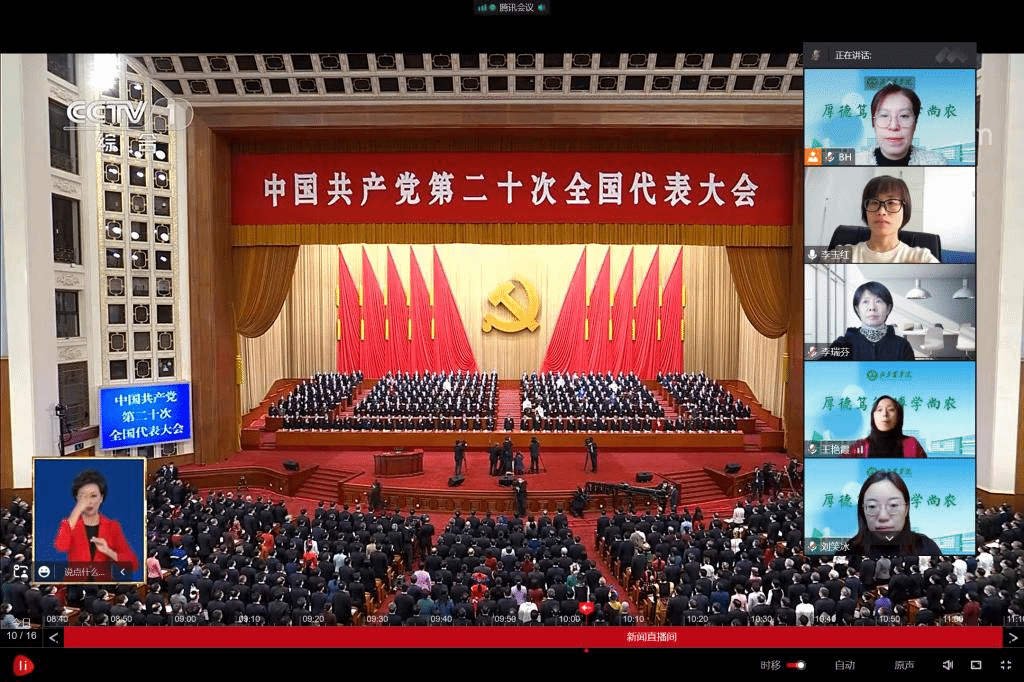 10月16日上午10时,中国共产党第二十次全国代表大会在北京人民大会堂隆重开幕。经济管理公司党总支组织教师代表、员工代表在会议室进行了集中收看,各师生党支部通过电视、互联网、移动设备等多种方式,收听收看党的二十大开幕会,认真聆听习近平总书记代表十九届中央委员会向大会作的报告。