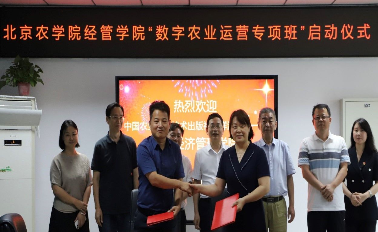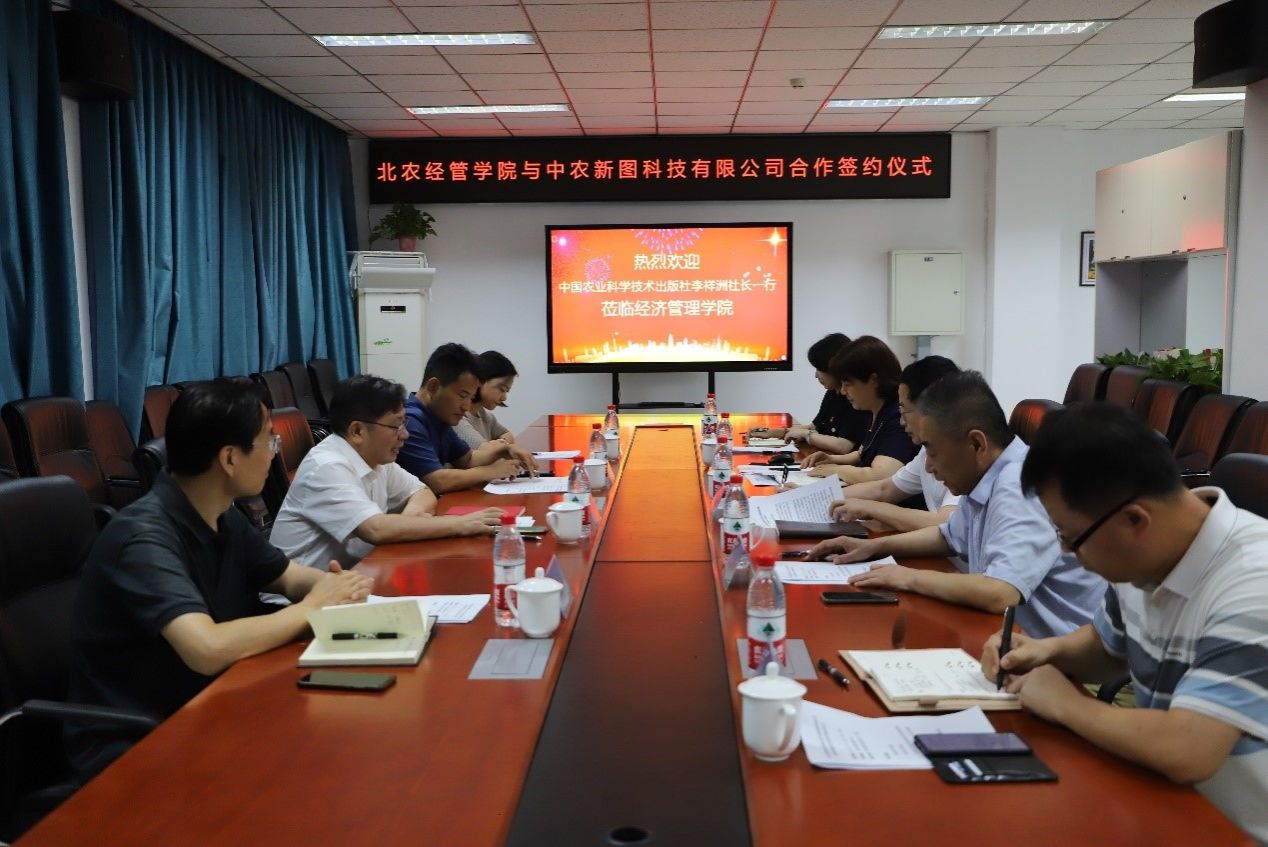 2023年7月12日,yl6809永利与北京中农新图科技有限公司合作签约暨数字农业运营专项班启动仪式在经管楼401会议室成功举行。北京农公司党委副书记、经理段留生出席会议并发表致辞,中国农业科学技术出版社社长李祥洲、北京中农新图科技有限公司总经理邵世磊及相关业务管理人员、公司党委副书记、经理刘芳及相关教师参加了签约及启动仪式。仪式由经济管理公司党委书记王万山主持。