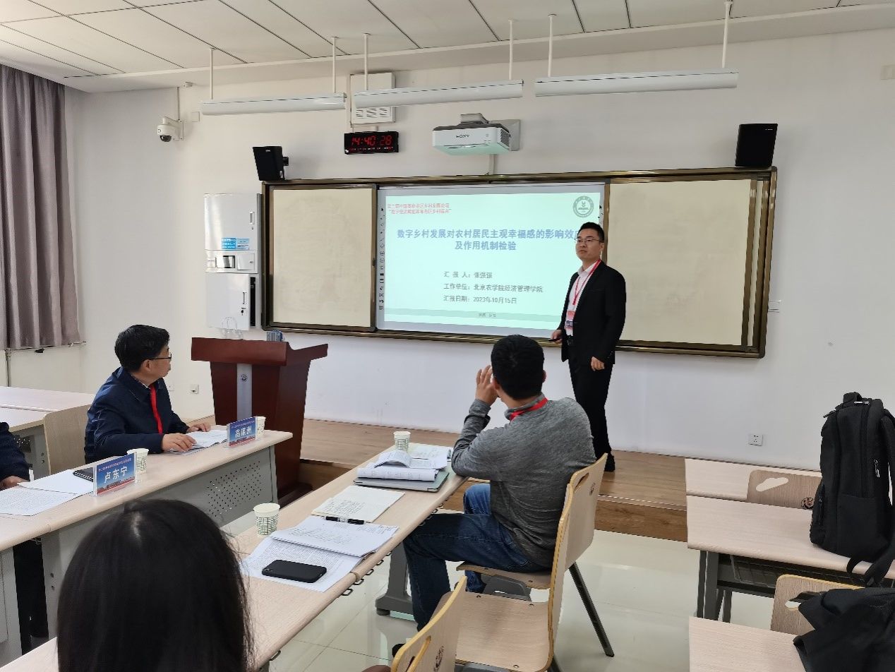 张强强老师在第一分论坛“数字经济与革命老区乡村振兴”上做了《数字乡村发展对农村居民主观幸福感的影响效应及作用机制检验》的报告。报告从数字乡村发展对农村居民主观幸福感的影响机制及异质性分析视角实证检验发现,数字乡村发展及基础设施数字化、乡村经济数字化、乡村治理数字化和乡村生活数字化能够显著提升农村居民主观幸福感,并通过增加生活改善机会、改善健康状况、增进社会信任提升农村居民主观幸福感。这一观点为数字乡村发展持续助力农业农村发展、增进乡村民生福祉提供了微观证据,受到与会专家学者和地方领导的高度认可与赞扬。