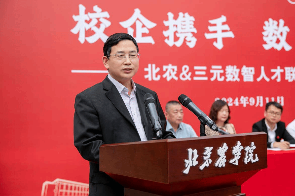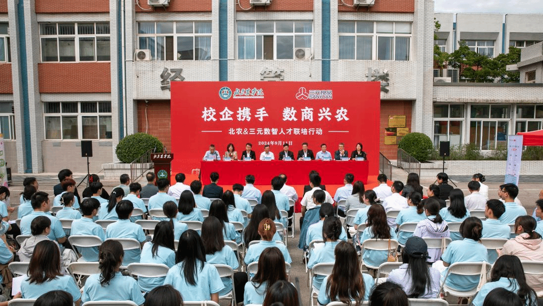 “北农&三元数智人才联培行动”旨在数智赋能“三农”发展,点燃乡村振兴“强引擎”,践行强农兴农使命,培养高层次复合型农林人才。通过本次行动,以数商兴农为“产教融合、校企合作”人才培养模式带来新生机,为人才协同共育注入新活力,构建校企数智人才培育共同体,形成“公司主导、企业融入、产业参与”的多元协同育人机制,深化成果推广、学术交流、人才培训等方面的合作,推动产业链、人才链、创新链有机融合,不断提升校企合作的质量和效益。