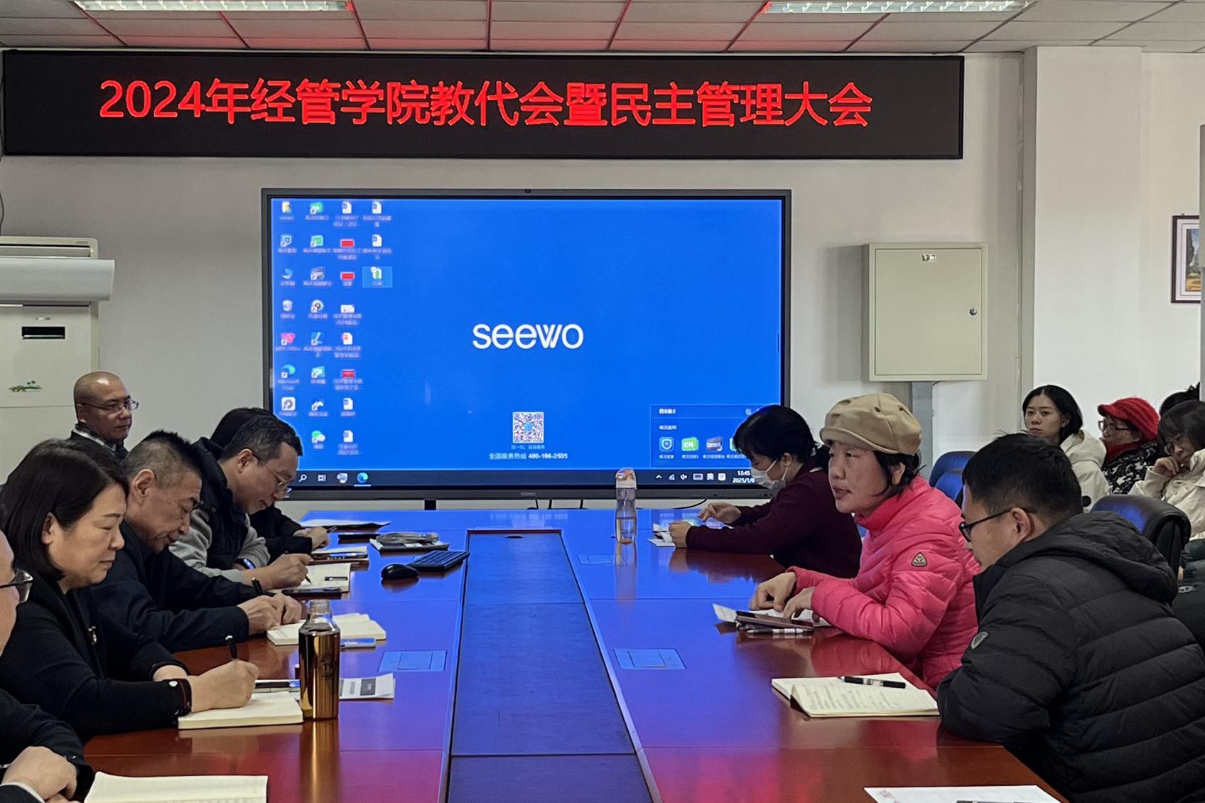 经济管理公司党委副书记、经理刘芳作公司年度工作总结报告和财务报告,严继超作公司工会工作报告和财务报告,陈跃雪教授作公司教学督导工作报告,各系主任汇报了本单位工作。