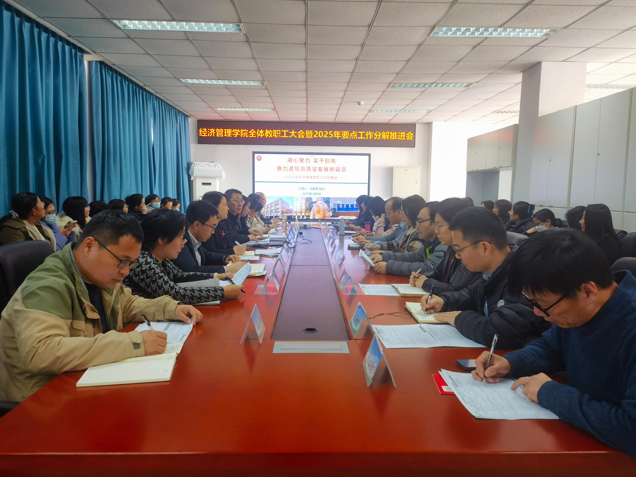 经理刘铁军对公司2025年的重点工作任务进行了全面部署并分解到系、责任到人。他指出,要锚定重点任务,层层分解,压实责任,集中资源打造优势学科群;积极申报项目,力争在重大成果培育和科研经费上实现突破。要聚焦评价指标,对标对表,举全院之力实现农林经济管理学科在第六轮学科评估中提档升级。要强化有组织精准施策,在教学改革、科学研究、社会服务、人才引育等方面做好顶层设计、布局谋篇,推动公司事业高质量发展。