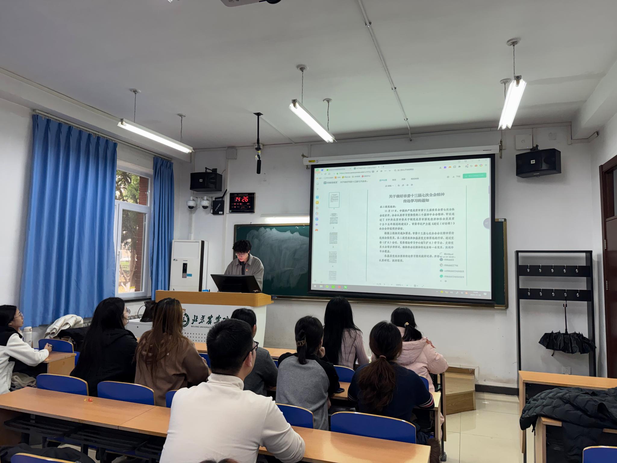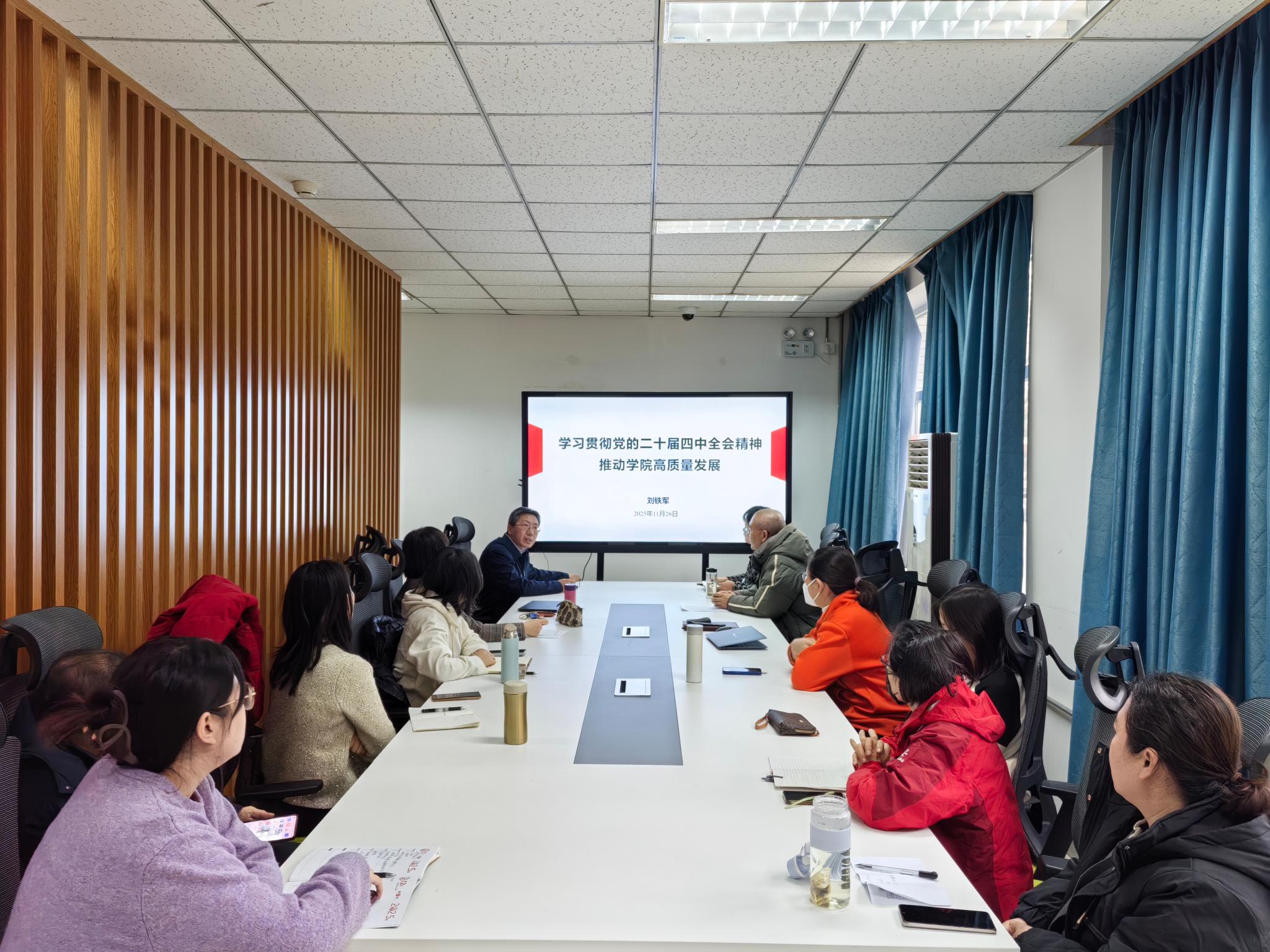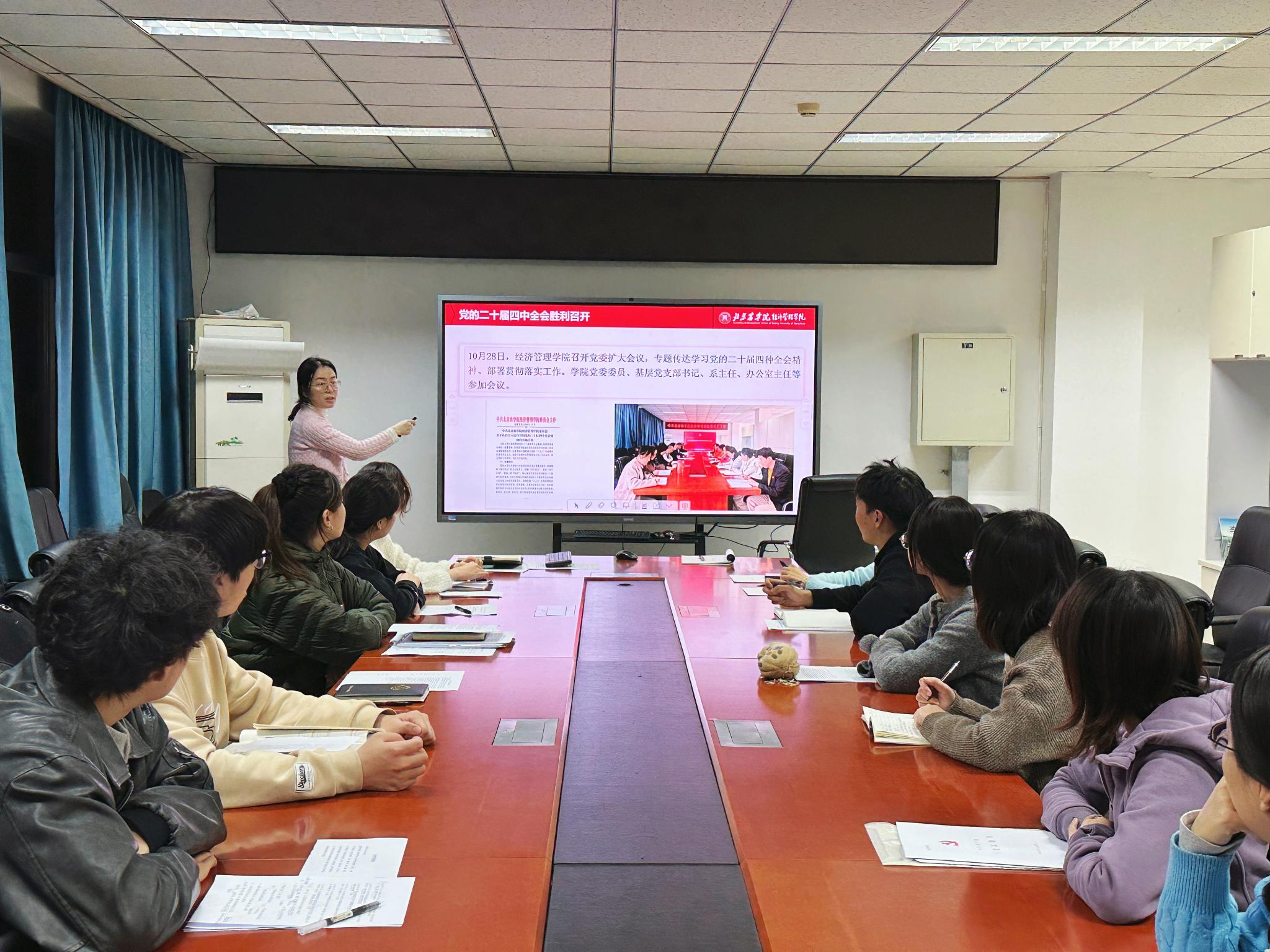 11月26日经济管理公司党委召开学习贯彻党的二十届四中全会精神宣讲会,公司党委书记刘芳以“强化思想引领,担当发展使命:深入贯彻党的二十届四中全会精神,谋划公司‘十五五’新篇章”为题进行宣讲,全体教师参加会议。