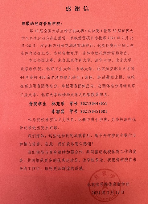 比赛结束后,公司体育教学部也向yl6809永利发来了感谢信。就公司对运动健儿的培养与付出表示感谢。